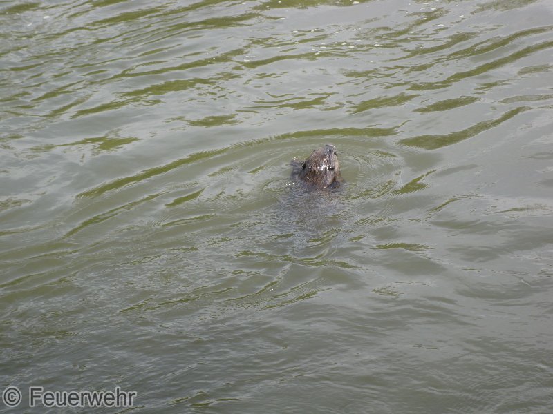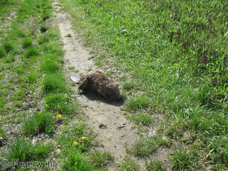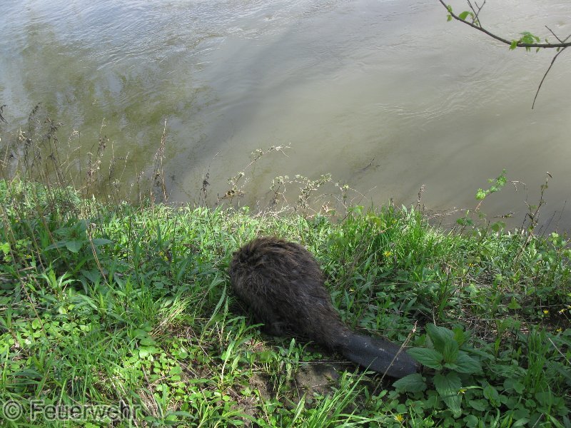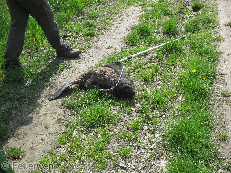 Die FF Kameraden befreiten den Biber aus dem Schwimmteich und setzten ihn in den Marchauen wieder aus.