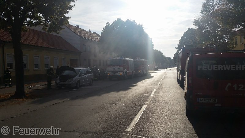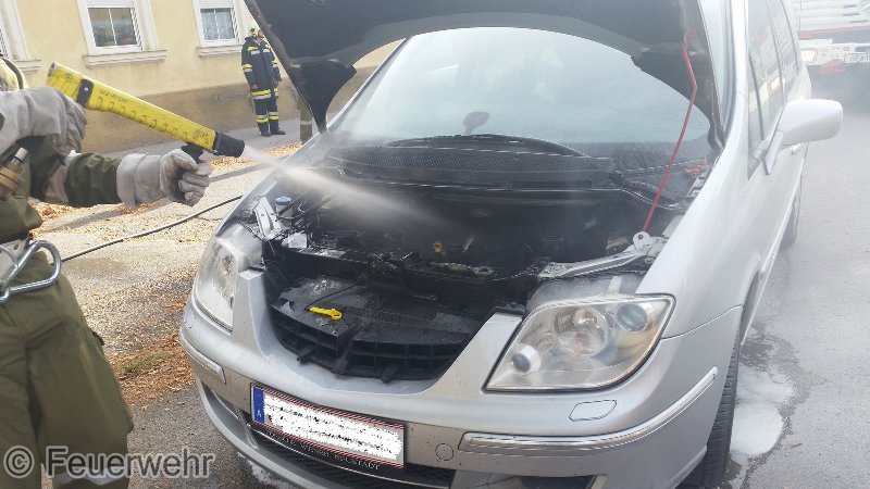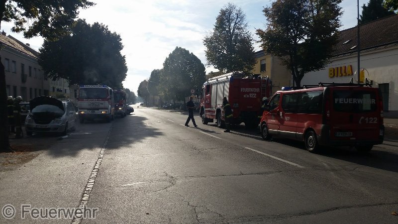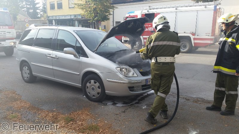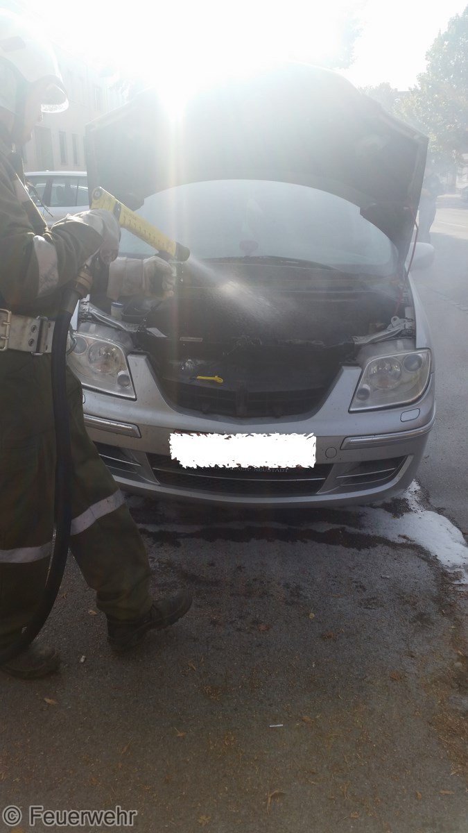 PKW stand am Fahrbahnrand entlang der Bundesstraße (Hauptstraße 35) und es Drangen Rauch und Flammen aus dem Motorraum.
