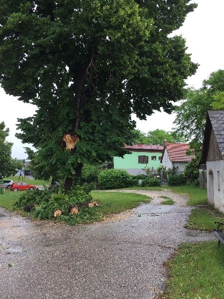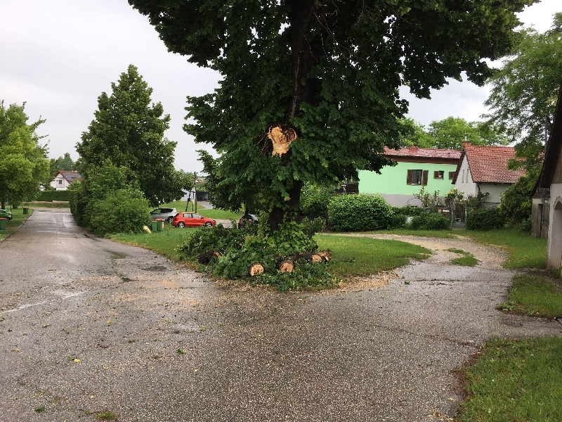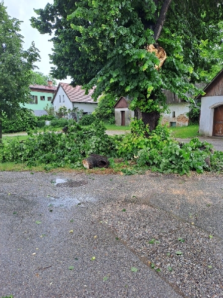 Ast wurde mittels Motorsäge zerschnitten und zur Seite geräumt. Abtransport erfolgt durch die Gemeinde.
