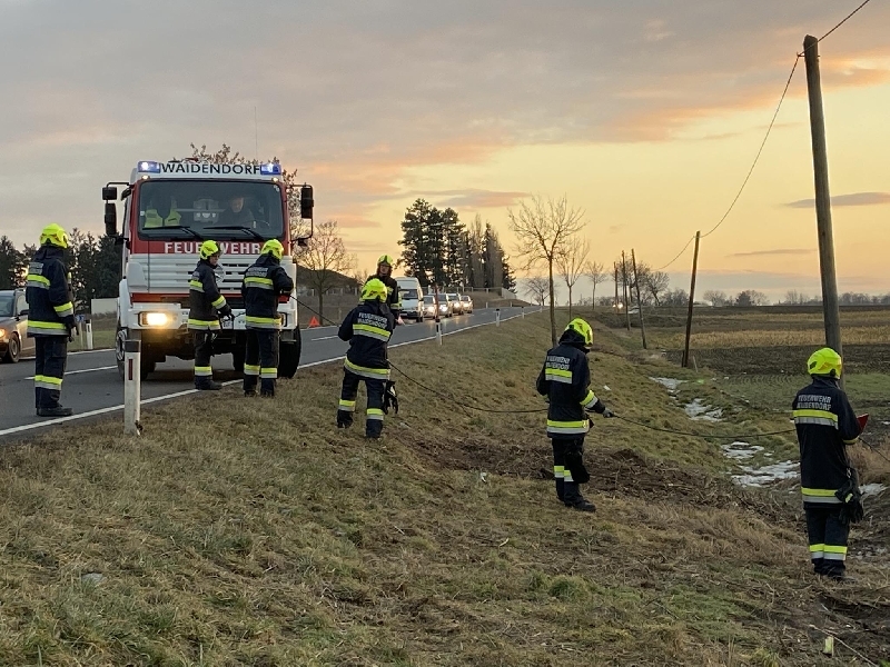 Die Unfallstelle wurde abgesichert. Das Fahrzeug wurde mittels Seilwinde aus dem Feld gezogen und neben der Fahrbahn sicher abgestellt.