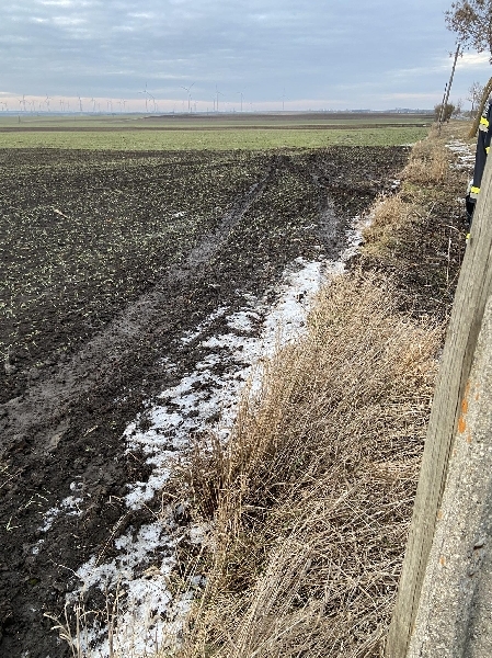 Fahrzeug ist von Stillfried kommend in Richtung Dürnkrut von der Fahrbahn abgekommen und im angrenzenden Feld zum Stehen gekommen.