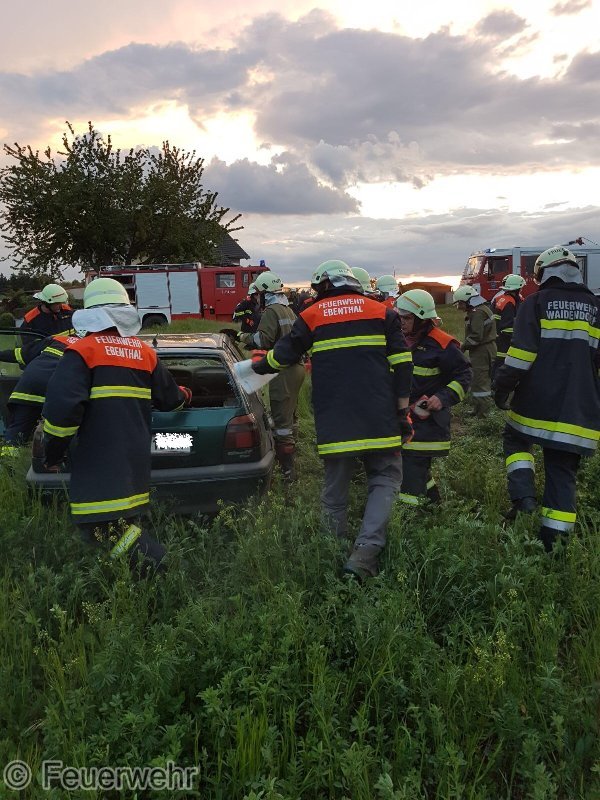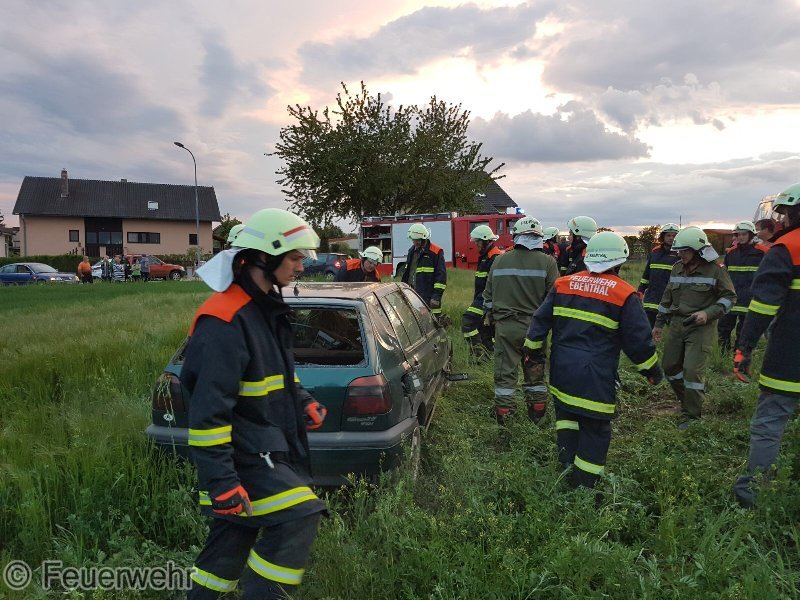 Straße abgesichert und Brandschutz aufgebaut, Fahrzeug mit der FF Ebenthal aufgerichtet und zur Bergung der FF Ebenthal übergeben.