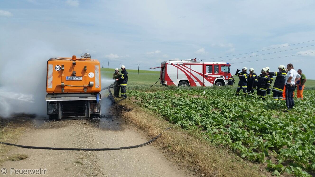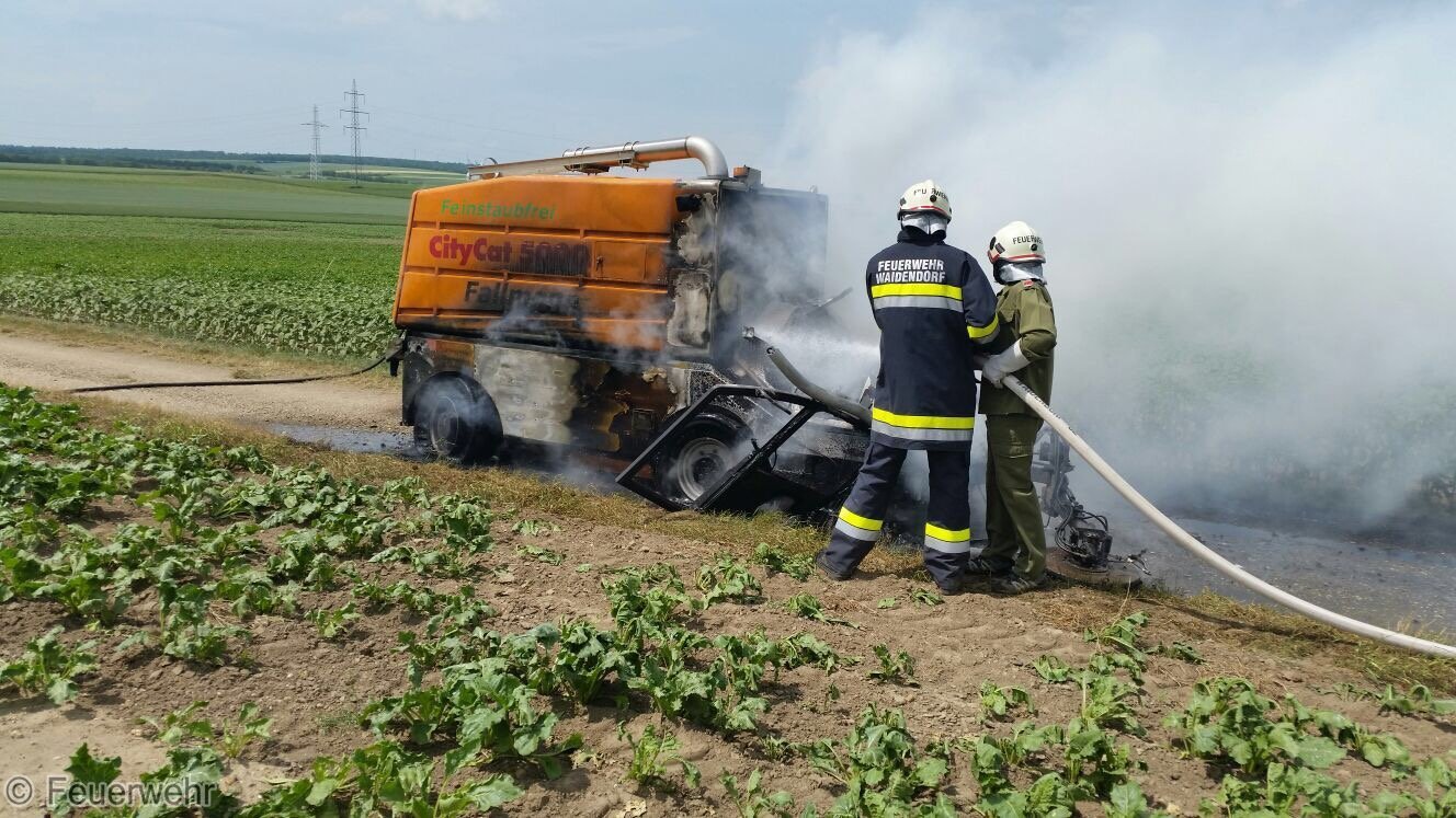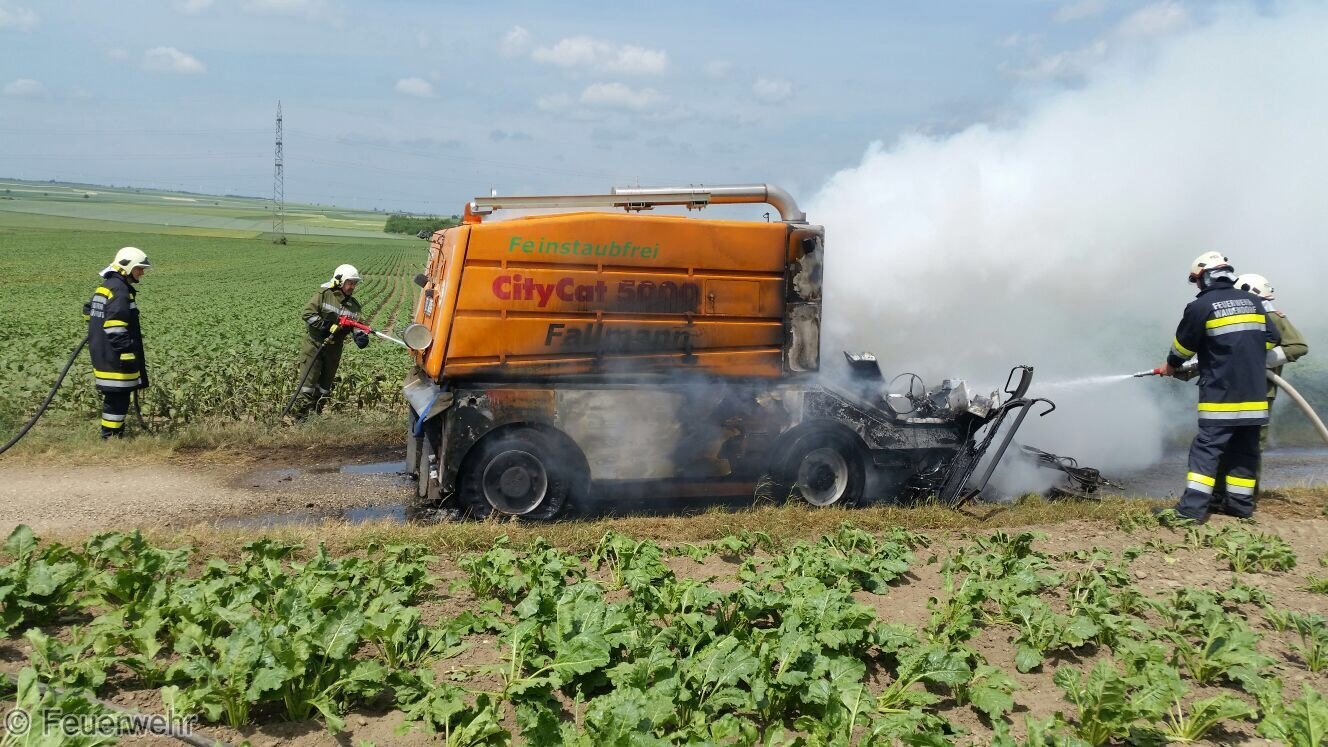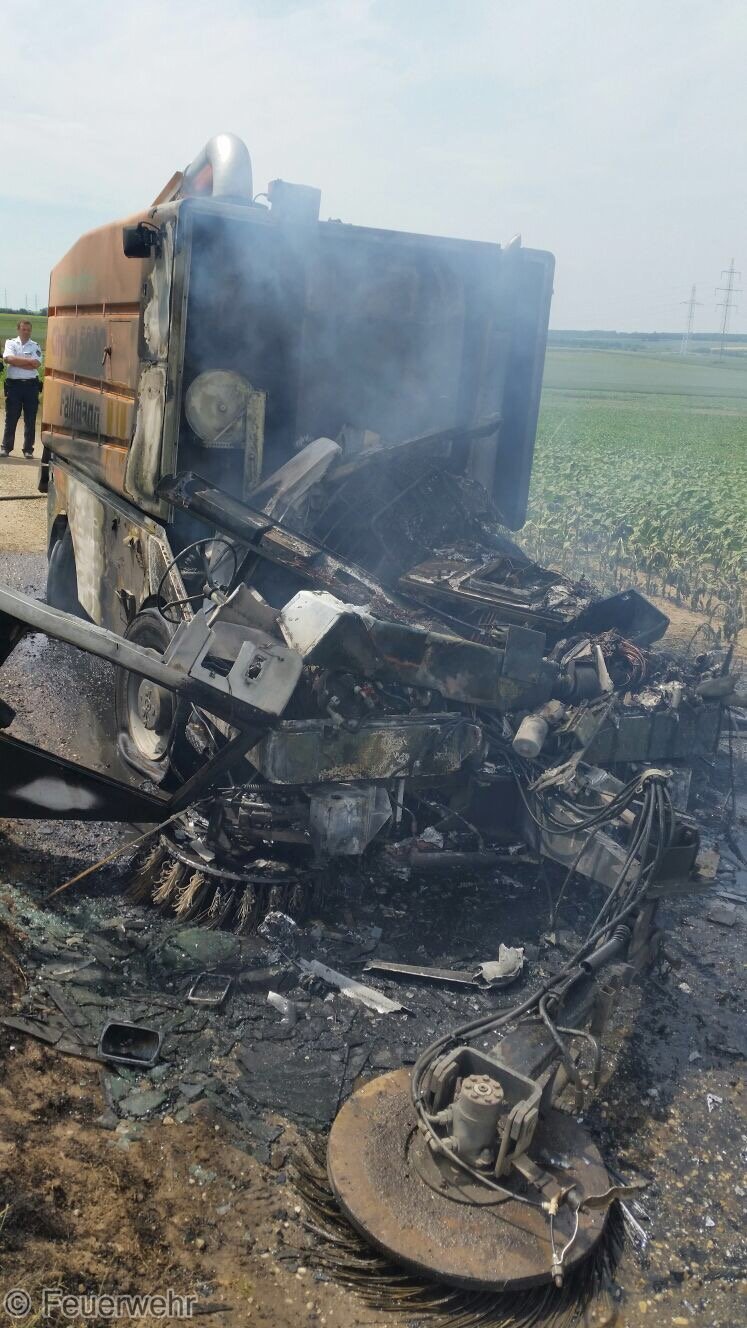 Kehrmaschine stand in Vollbrand