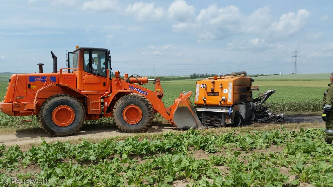 Anschließend wurde die Kehrmaschine mit einem Lader zum Abstellplatz bei der Kläranlage Dürnkrut gebracht.