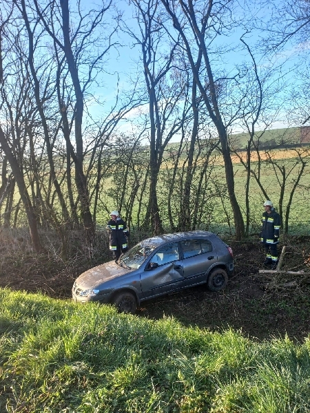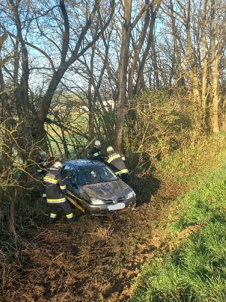 Einsatzstelle wurde abgesichert und mit der Seilwinde des RLFA wurde das Fahrzeug auf die Fahrbahn gezogen.